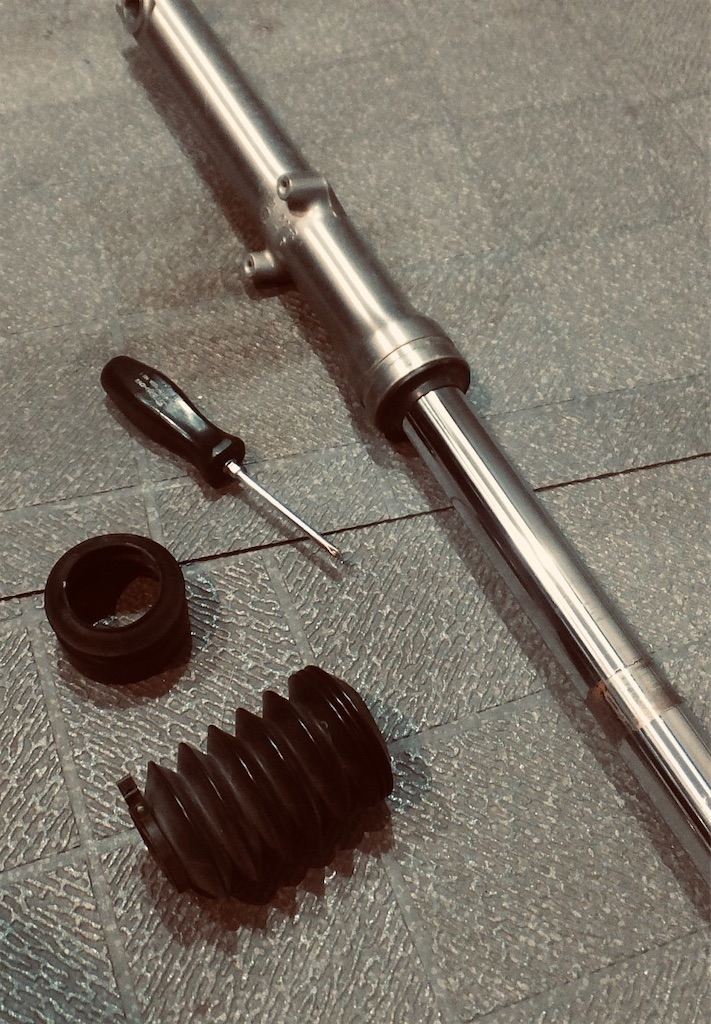 でもここが破れたままだと、フォークのインナーチューブに水や砂が入りやすくなって、 錆やオイルシールの劣化につながってしまいます。 体感できなくても、大事な役割を果たしてるパーツなんです。